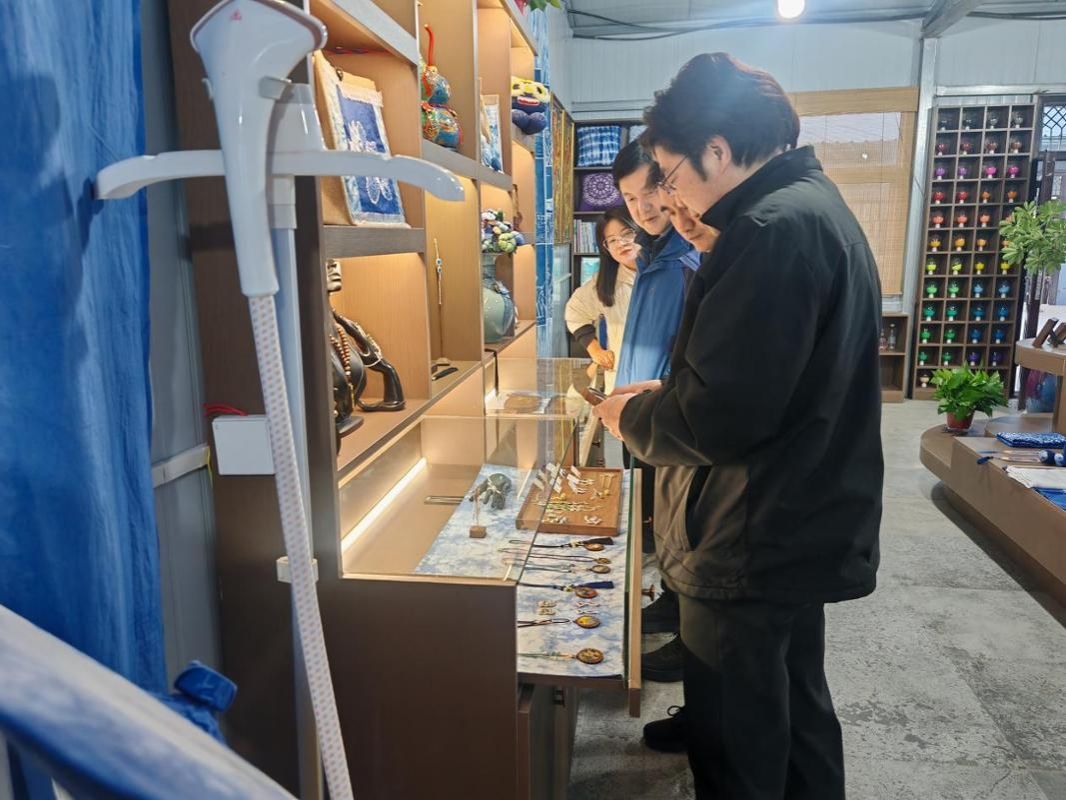 老师们来到实训室后,参观了汝瓷工作室、猫先生动漫实训基地、AIGC跨媒体工作室、益道工坊木艺实训室、新乡市天地人建筑工程有限公司共建实训室、版画实训室、染缬工作室和师生教学成果展示厅。各专业精心打造的实训室里有学生在实践创作,各专业老师们在参观之余又再次碰撞了思想,交流了横向交融的专业实践设想,起到了专业实践研讨的良好效果。
